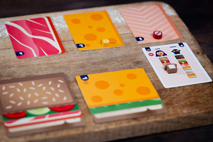 Stack ingredient cards, make sandwiches, and serve your customers to complete their orders and refresh your actions. If you run out of actions your customers will leave and give you a bad review!